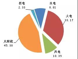 1-10月,全國僅新增太陽能裝機比重增加。其中,新增水電占新增總裝機的8.95%,較上年同期下降1.93個百分點;新增火電裝機比重達33.3%,較上年同期下降5.2個百分點;新增核電裝機比重2.18%,較上年同期下降6.9個百分點;新增風(fēng)電占10.7%,較上年同期下降1.85個百分點;新增太陽能發(fā)電裝機占44.9%,較上年同期增加15.8個百分點。