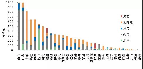 2017年1-10月,我國新增裝機主要集中在山東、江蘇、安徽、浙江、河南、四川、河北、福建、新疆等省份(新增裝機均在360萬千瓦以上),占新增裝機總量的67.5%;
