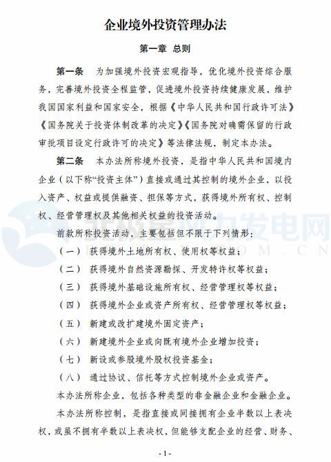 風(fēng)電企業(yè)注意了!國家發(fā)改委公布《企業(yè)境外投資管理辦法》