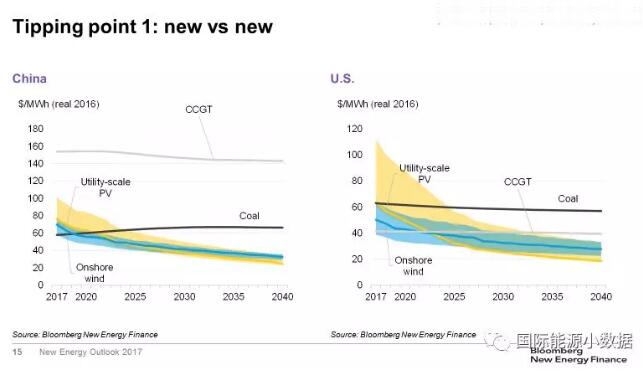 風(fēng)電、光伏能否最終取代煤電、天然氣發(fā)電取決于兩個(gè)關(guān)鍵節(jié)點(diǎn),或者說臨界點(diǎn):1)New vs New(新對(duì)新)第一個(gè)臨界點(diǎn)是:在沒有補(bǔ)貼的情況下,新建風(fēng)電、光伏電站發(fā)電成本可與新建煤電、天然氣電站競(jìng)爭(zhēng)。在目前