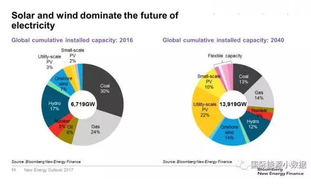 根據(jù)BNEF的預(yù)測(cè),2040年太陽能光伏將成為主導(dǎo)能源之一,占全球發(fā)電總裝機(jī)的32%;風(fēng)電14%、水電12%、煤電14%、天然氣13%、核電3%。