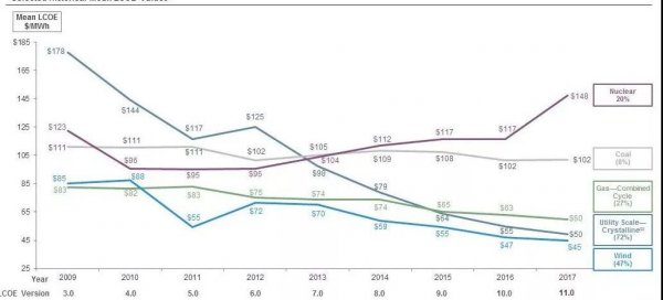 從經(jīng)濟性的角度看,對比核電、煤電、燃氣電站、光伏電站以及風(fēng)力發(fā)電幾類重要的電力生產(chǎn)方式,可以看到風(fēng)力發(fā)電是具有比較好的經(jīng)濟優(yōu)勢的。