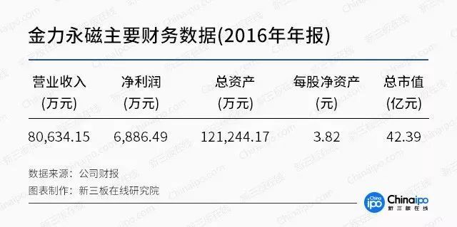 得益于我國豐富的稀土儲備資源,金力永磁在研發(fā)生產(chǎn)上已經(jīng)具備了相當大的優(yōu)勢。目前公司產(chǎn)品在風電行業(yè)的占有率約為50%左右,年供貨量在3000噸左右,一躍成為世界上最大的永磁風力發(fā)電機磁鋼供應商。新三板在線研究院查閱資料發(fā)現(xiàn),金力永磁的第二大股東是金風科技全資子公司金風投控,持股約占公司總股本的16、14%。有了金風科技在背后的支持,金力永磁可謂是如虎添翼。雖然在2016年由于公司在研發(fā)上投入巨大導致業(yè)績有所下滑,不過過去幾年公司一直保持著高速成長,最近更是被證監(jiān)會受理準備登陸A股市場。