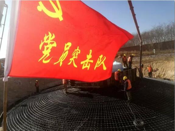 工期是效益。在保障安全、質(zhì)量的前提下,以及1號(hào)風(fēng)機(jī)基礎(chǔ)施工圖紙2017年10月20日到圖的實(shí)際情況,突擊隊(duì)隊(duì)員周密組織、不等不靠、認(rèn)真籌劃、以艱苦奮斗的精神和敢打硬仗的作風(fēng)披荊斬棘,戰(zhàn)勝一個(gè)個(gè)困難,攻克一道道難關(guān)。短短幾天即完成1號(hào)風(fēng)機(jī)的FCD,2017年12月4日混凝土強(qiáng)度即滿足吊裝條件,全體黨員以實(shí)際行動(dòng)充分體現(xiàn)了黨員的先鋒模范作用和黨支部的戰(zhàn)斗堡壘作用,讓黨員突擊隊(duì)的旗幟在施工現(xiàn)場(chǎng)迎風(fēng)飄揚(yáng)。