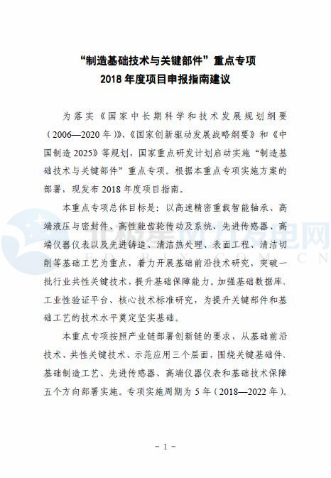 附件4:“制造基礎(chǔ)技術(shù)與關(guān)鍵部件”重點專項2018年度項目申報指南建議(部分節(jié)選)