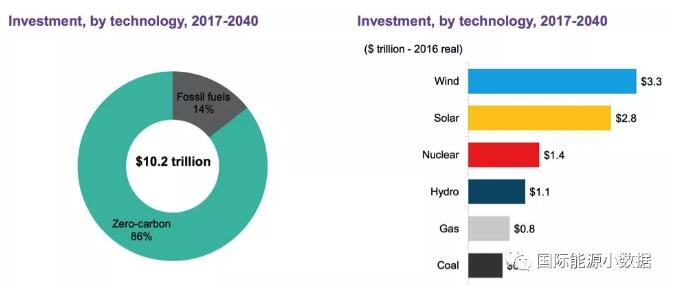 巨額的資金正在流向可再生能源的開發(fā)。根據(jù)彭博新能源財(cái)經(jīng)的數(shù)據(jù),2017-2040年全球新增電力裝機(jī)投資將達(dá)10.2萬億美元,其中86%用于可再生能源發(fā)電裝機(jī)。