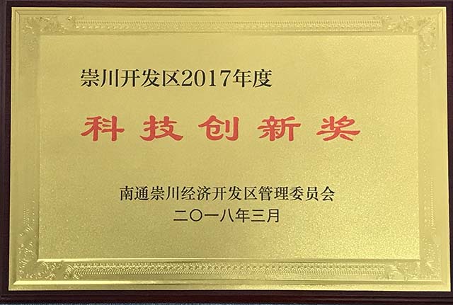 龍?jiān)凑袢A榮獲南通崇川開發(fā)區(qū)2017年度“科技創(chuàng)新獎(jiǎng)”
