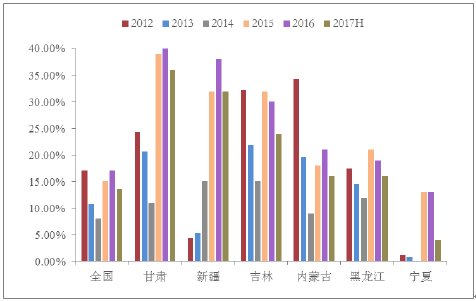 2)制風(fēng)新裝的風(fēng)電象望漸決:2017年半全國風(fēng)為1362%,比降738個分。紅省區(qū)棄率降明,肅新、林內(nèi)古黑江寧的風(fēng)分同下降11%、13%、15%、14%、7%和18%。