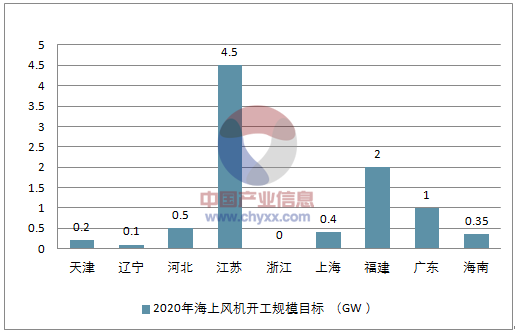 2020年海上風(fēng)機開工規(guī)模目標(biāo) (GW )