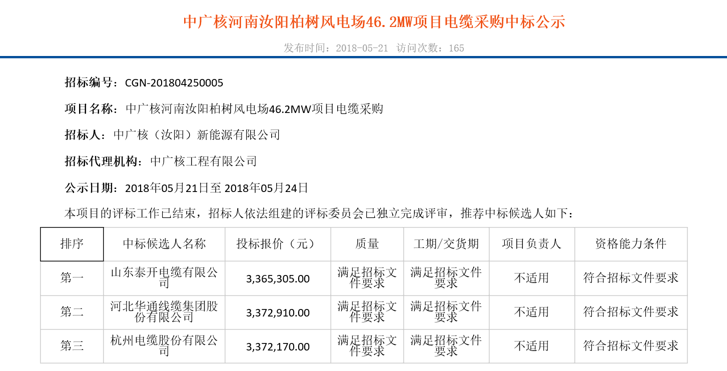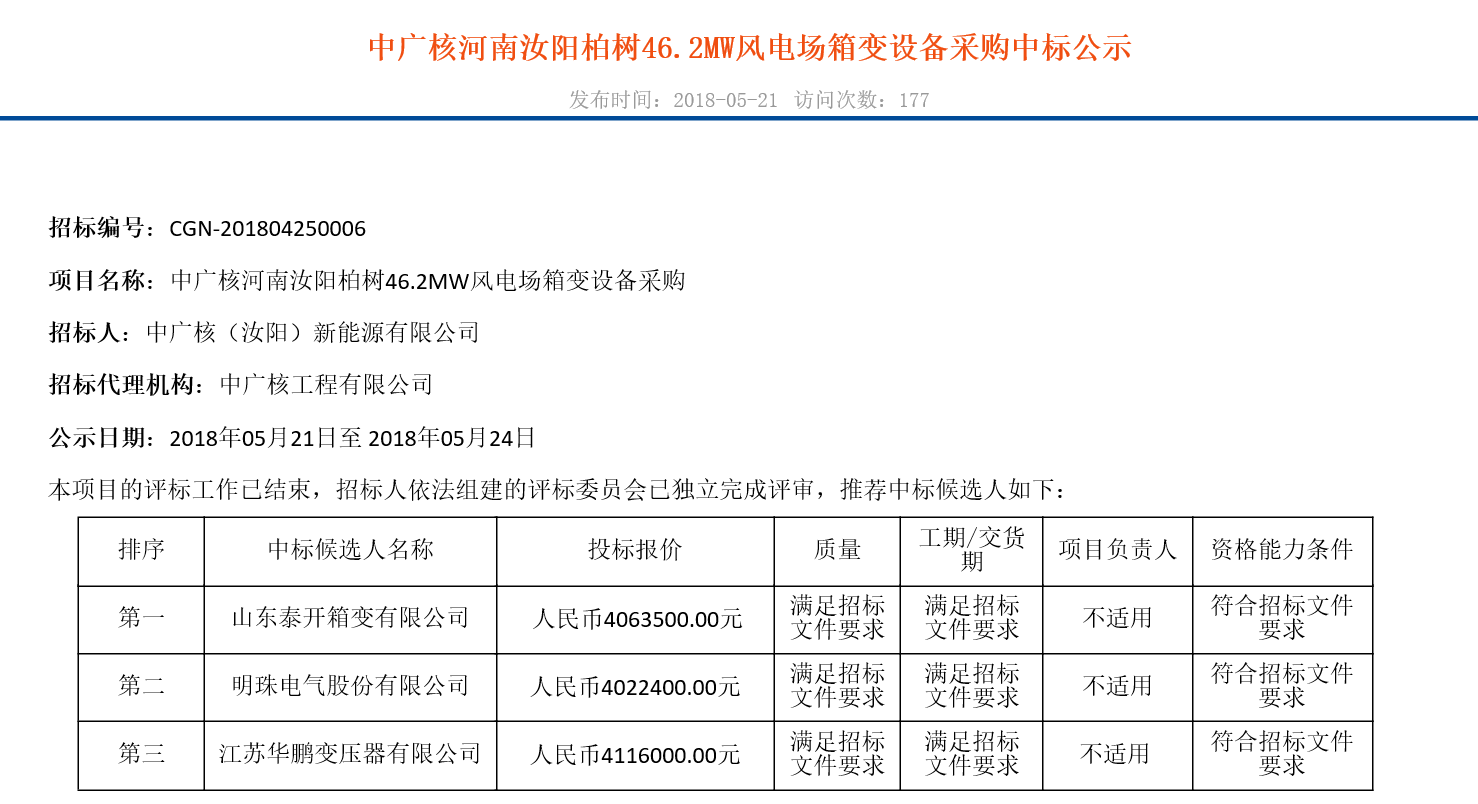 近期(5月19—5月24),中廣核電力商務(wù)平臺(tái)公布7個(gè)風(fēng)電項(xiàng)目中標(biāo)人及報(bào)價(jià)公示,細(xì)看!有料。