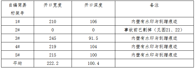 墜落的人員中有7名作業(yè)人員墜落在單邊長度小于3米的倒V形范圍內(nèi),3袋物料的落點(diǎn)集中,墜落竹排的撞擊坑痕跡呈近似直線形態(tài)分布,竹排大部分沿東西取向,4榀簡易桁架墜地后大體上沿南北取向,且比較集中在靠近西側(cè)垃圾儲(chǔ)坑邊緣。