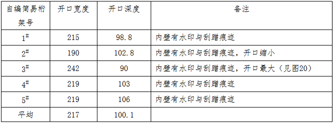 5榀簡易桁架中最小變形量為650mm,平均變形量為820mm。鞍座內(nèi)表面存在雨水痕跡和事發(fā)時(shí)刮蹭的痕跡。