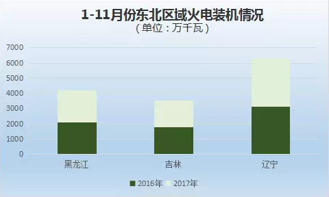 2017年1-11月份東北區(qū)域火電裝機(jī)容量有小幅度的增長(zhǎng)。黑龍江、吉林、遼寧三省火電裝機(jī)容量分別為2119萬(wàn)千瓦、1776萬(wàn)千瓦、3193萬(wàn)千瓦,僅高于上年同期26萬(wàn)千瓦、1萬(wàn)千瓦、84萬(wàn)千瓦。從數(shù)據(jù)上看,僅遼寧有小幅度增長(zhǎng),黑龍江和吉林基本保持2016年的裝機(jī)容量。東北區(qū)域火電機(jī)組深層次結(jié)構(gòu)調(diào)整壓力進(jìn)一步凸顯。