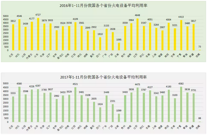 2017年,各個(gè)省份全社會(huì)用電量均實(shí)現(xiàn)了正增長(zhǎng),受到全社會(huì)用電量的總體拉動(dòng),2017年1-11月份,北京、江蘇、山東、廣西、遼寧、黑龍江等14個(gè)地區(qū)出現(xiàn)下滑,河北、山西、江西、浙江等地雖然高于上年同期水平,但增長(zhǎng)幅度并不高。根據(jù)中國(guó)電力企業(yè)聯(lián)合會(huì)最新公布數(shù)據(jù)顯示,11月份,我國(guó)火電設(shè)備平均利用率達(dá)到3772小時(shí),高于去年同期水平16小時(shí)。