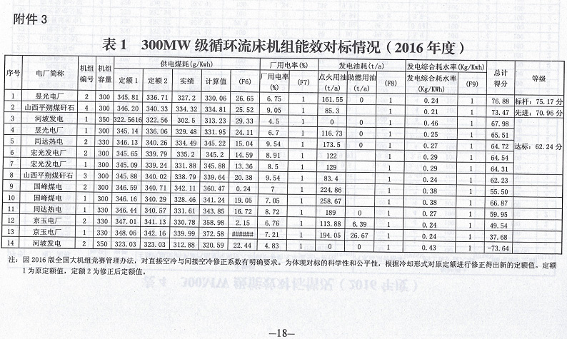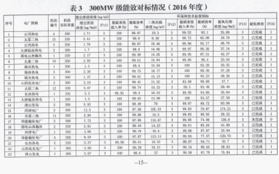 山西省發(fā)布2016年度火電企業(yè)能效水平的通報(bào)