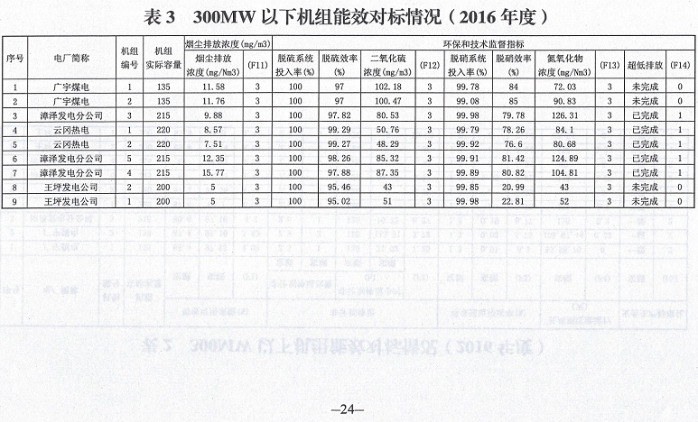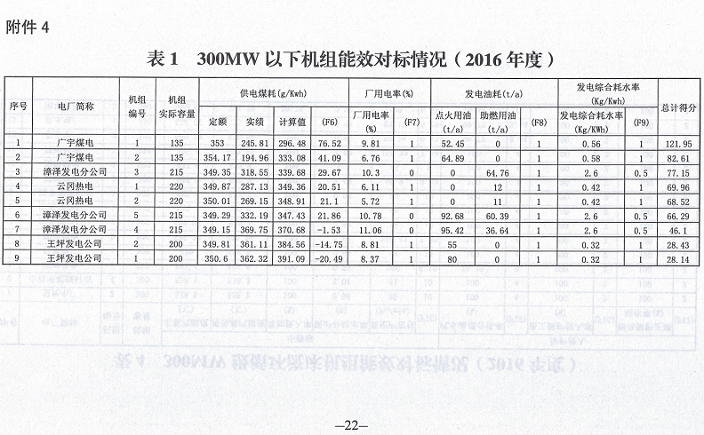 山西省發(fā)布2016年度火電企業(yè)能效水平的通報(bào)