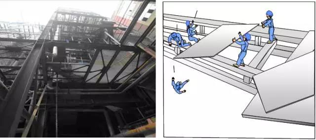 某廠安裝主廠房屋面板,5名工作班成員高處作業(yè)均未系安全帶,在推動鋼板過程中,因兩側(cè)用力不均,其中一側(cè)3人墜落死亡。