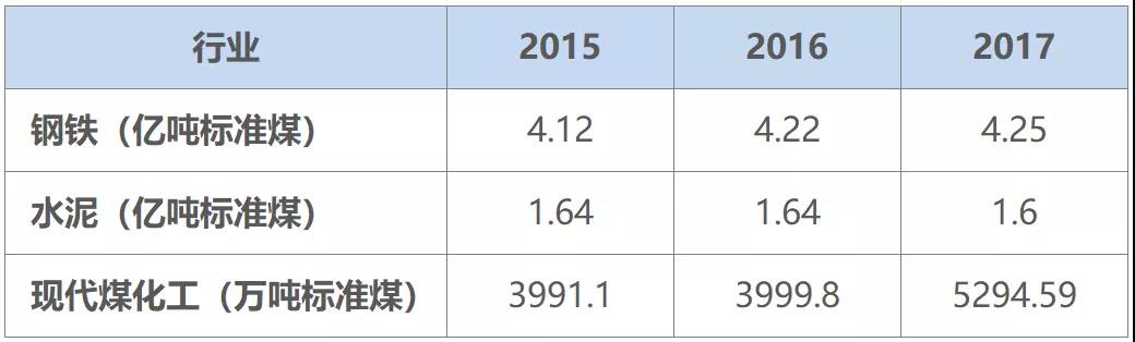 ▲2015-2017鋼鐵、水泥和現(xiàn)代煤化工的煤炭消費(fèi)情況。數(shù)據(jù)來(lái)源:《“十三五”煤控中期評(píng)估與后期展望研究報(bào)告》(初稿)
