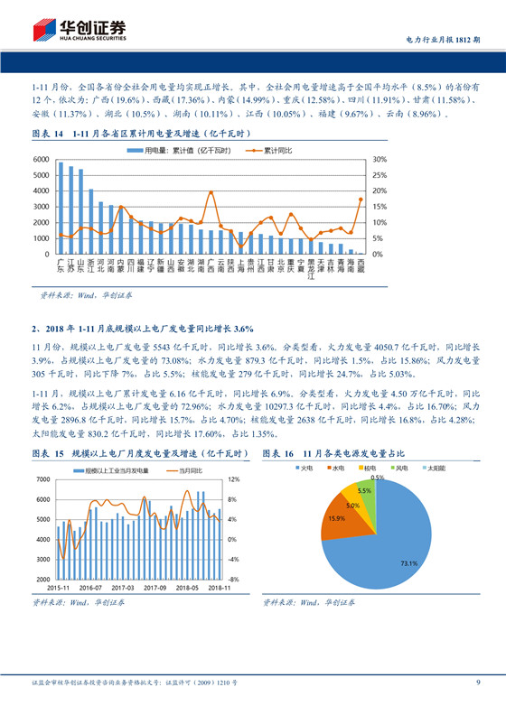 11月份,全社會用電量5647億千瓦時,同比增長6.32%。1-11月,全社會用電量累計6.22萬億千瓦時,同比增長8.5%。截至11月底,全國6000千瓦及以上電廠裝機容量17.75億千瓦,同比增長5.2%。1-11月全國發(fā)電設備平均利用小時為3518小時,比上年同期增加103小時。水電平均利用小時為3358小時,比上年同期增加60小時;火電平均利用小時為3946小時,比上年同期增加175小時;核電平均利用小時為6791小時,比上年同期增加287小時;風電平均利用小時為1891小時,比上年同期增加139小時。
