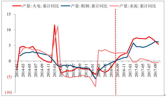 煤炭需求端的企穩(wěn)回暖始于 2016 年三季度。作為煤炭下游需求側的重要工業(yè)領域,以電力和鋼鐵行業(yè)為主的下游產量回暖,在一定程度上有效提升了煤炭需求。在經歷了 2015 及 2016 上半年產量的連續(xù)下行期后,自2016 年三季度起我國火電發(fā)電量和粗鋼產量累計同比數據開始轉向正增長,并且在進入 17 年后,需求也整體維持高位,截至 2017 年 10 月火電發(fā)電量累計同比增長 5.4%,粗鋼產量累計同比增長 6.1%。