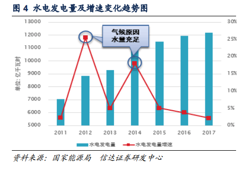 我們預(yù)測,2018年,全社會(huì)用電量增速6%的情況下,全社會(huì)用電量增長約為4000億千瓦時(shí),按照各類電源發(fā)電量結(jié)構(gòu)測算,煤電增長約2640億千瓦時(shí),折合成標(biāo)煤約為3245萬噸,也就是說對(duì)應(yīng)原煤消費(fèi)增長4543萬噸,引發(fā)煤炭消費(fèi)部分修復(fù);相應(yīng)水電發(fā)電量增長約800億千瓦時(shí),氣電、并網(wǎng)風(fēng)電發(fā)電量增長200億千瓦時(shí),并網(wǎng)太陽能發(fā)電、核電發(fā)電量增長80億千瓦時(shí)左右。