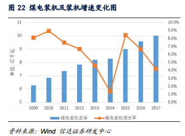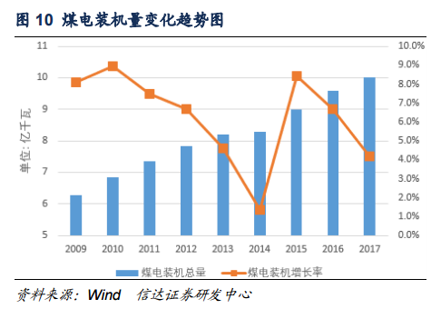 我們預(yù)計(jì),2018年煤電裝機(jī)總量約為10.4億千瓦,裝機(jī)增速大概率不會(huì)超過4%,未來煤電裝機(jī)總量將繼續(xù)增加,但裝機(jī)增速將明顯放緩。