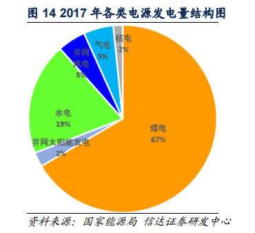 從裝機(jī)容量來看,2017年,煤電裝機(jī)總量約為10億千瓦,占發(fā)電裝機(jī)總量的58%;從發(fā)電量來看,煤電全年約為42000億千瓦時(shí),約占全年總發(fā)電量的67%;這說明煤電是電力供應(yīng)的主要電源,在電源結(jié)構(gòu)中占據(jù)核心地位。