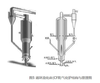 循環(huán)流化床(CFB)氣化爐由下部、上部及尾部三個部分組成,內(nèi)部設(shè)有耐熱防磨內(nèi)襯。氣化爐結(jié)構(gòu)與原理見圖5。