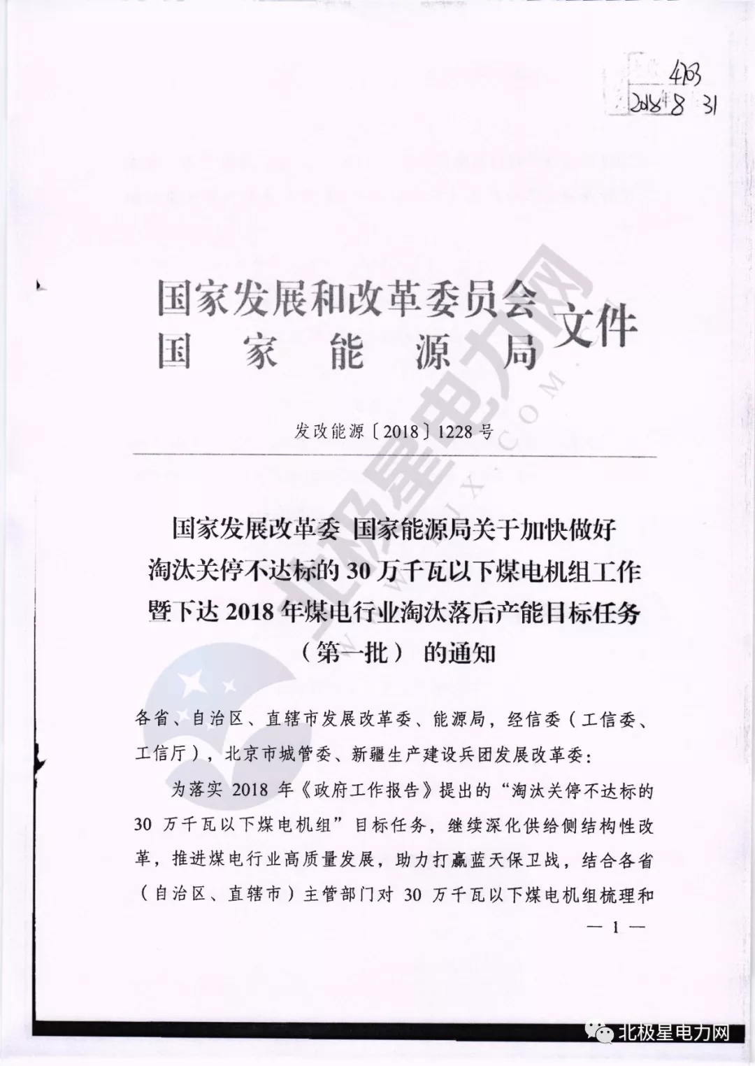 日前,《國家發(fā)展改革委 國家能源局關(guān)于加快做好淘汰關(guān)停不達(dá)標(biāo)的30萬千瓦以下煤電機(jī)組工作暨下達(dá)2018年煤電行業(yè)淘汰落后產(chǎn)能目標(biāo)任務(wù)(第