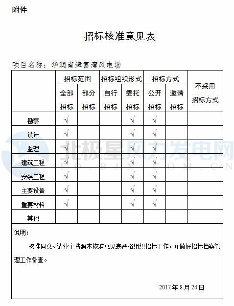 五、請(qǐng)嚴(yán)格按照本文核準(zhǔn)意見實(shí)施招標(biāo)。招標(biāo)范圍、招標(biāo)組織形式、招標(biāo)方式等要求見《招標(biāo)核準(zhǔn)意見表》(附后)。