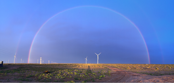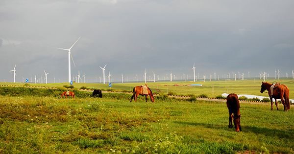 遼闊草原美麗山崗群群的牛羊,白云悠悠彩虹燦爛掛在藍(lán)天上……當(dāng)位于內(nèi)蒙古東部通遼市科左中旗代力吉風(fēng)電廠的第一臺(tái)風(fēng)機(jī)迎來晨曦的第一縷陽光時(shí),位于內(nèi)蒙公司最西面的巴彥淖爾市蘇吉光伏電站還沉浸在黎明前的黑