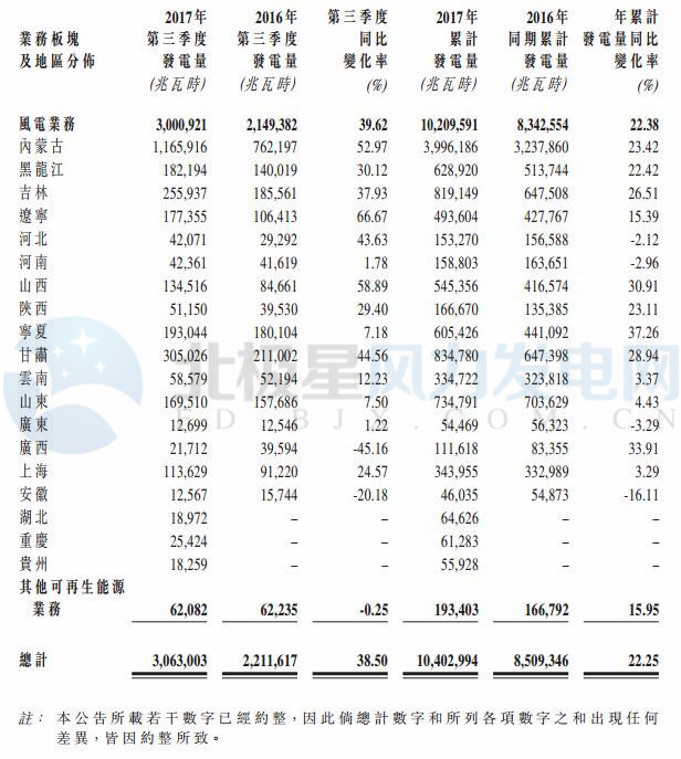 大唐新能源第三季度風電發(fā)電量30.01億千瓦時 同比增加39.62%
