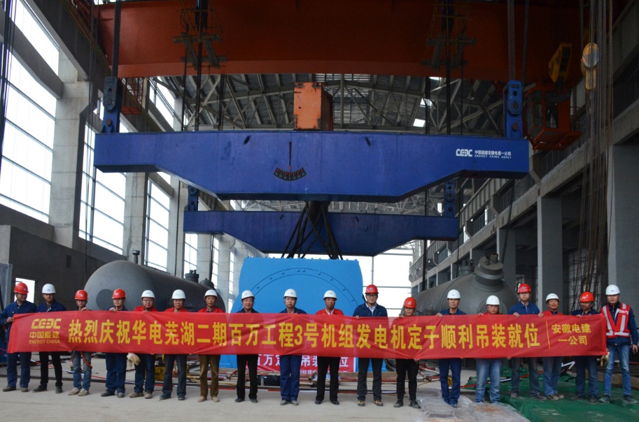 華電蕪湖二期百萬(wàn)工程3號(hào)機(jī)組發(fā)電機(jī)定子順利就位