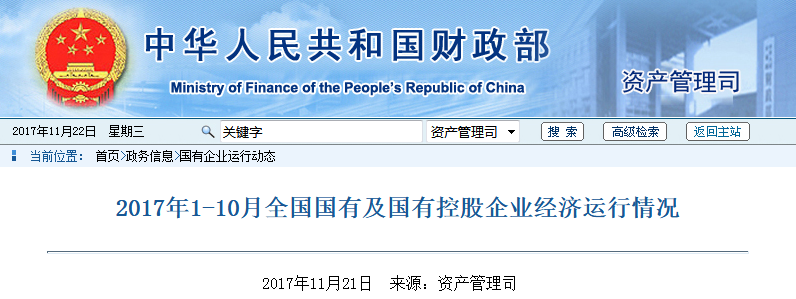 昨日,中華人民共和國財政部資產(chǎn)管理司發(fā)布《2017年1-10月全國國有及國有控股企業(yè)經(jīng)濟運行情況》,全文如下: