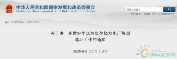 關(guān)于進(jìn)一步做好生活垃圾焚燒發(fā)電廠規(guī)劃選址工作的通知