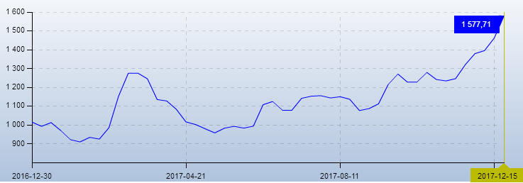 12月13日至12月19日,環(huán)渤海動(dòng)力煤價(jià)格指數(shù)報(bào)收于577元/噸,環(huán)比上行1元/噸。