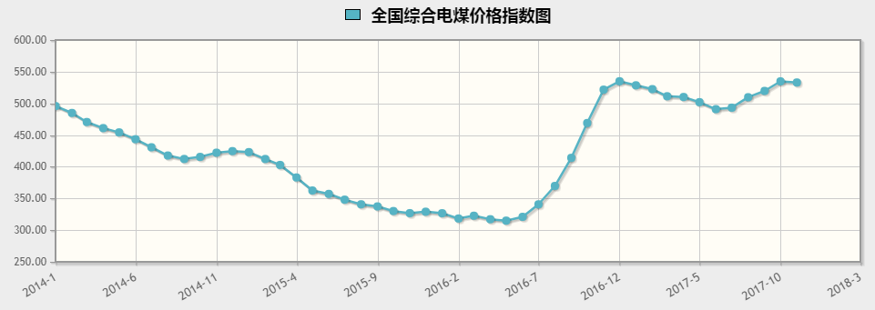 國(guó)家發(fā)改委網(wǎng)站公布了2017年11月份全國(guó)電煤價(jià)格指數(shù)。11月份全國(guó)電煤價(jià)格指數(shù)為532.98元/噸,環(huán)比下降1.78元/噸,降幅0.3%,同比上今年以來(lái),煤炭市場(chǎng)供需保持總體平衡。