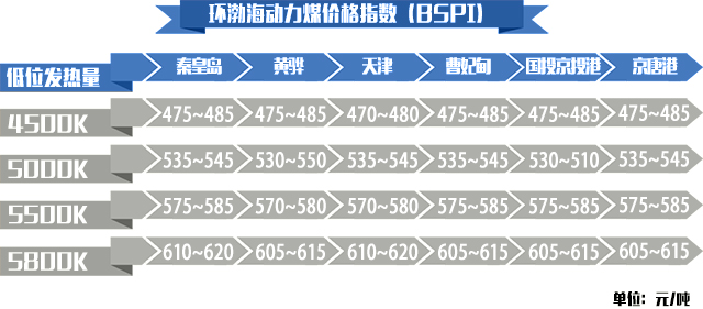 l 秦皇島海運(yùn)煤炭交易市場(chǎng)發(fā)布的環(huán)渤海動(dòng)力煤價(jià)格指數(shù)(環(huán)渤海地區(qū)發(fā)熱量5500大卡動(dòng)力煤的綜合平均價(jià)格)577元/噸,環(huán)比上行1元/噸。
