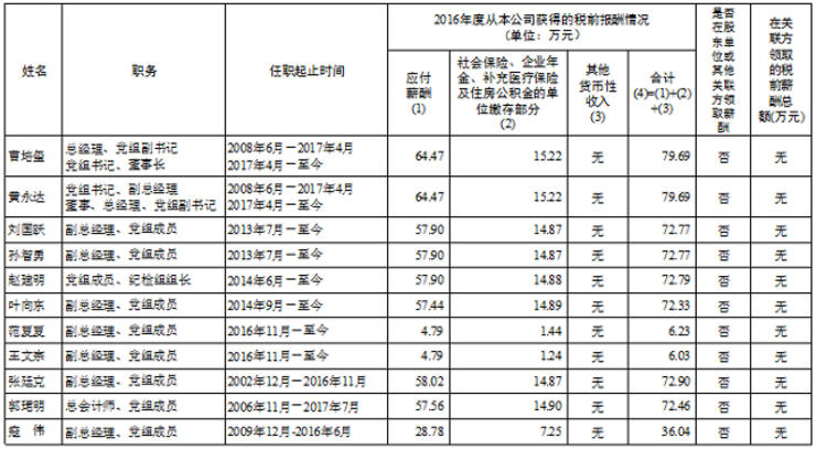 中國(guó)華能集團(tuán)公司企業(yè)負(fù)責(zé)人2016年度薪酬情況表