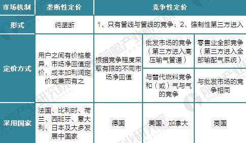 圖表1:不同市場結(jié)構(gòu)下天然氣定價方式對比