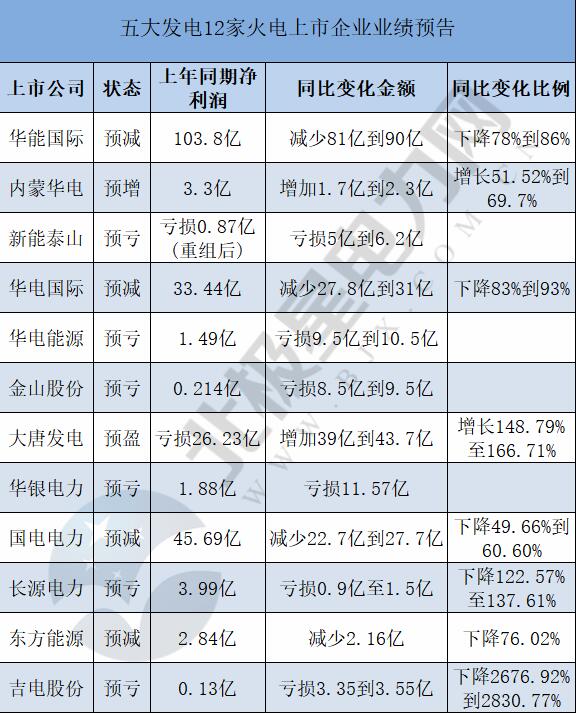 12家火電上市企業(yè)發(fā)布業(yè)績(jī)預(yù)告 —6家預(yù)虧 4家預(yù)減