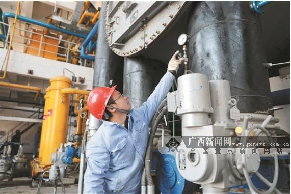 合浦農(nóng)林廢棄物熱電聯(lián)產(chǎn)項目成功并網(wǎng)發(fā)電。圖為工程技術(shù)人員正在操作機器設(shè)備