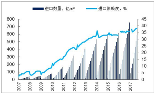 天然氣進(jìn)口量和進(jìn)口依賴(lài)度不斷提升
