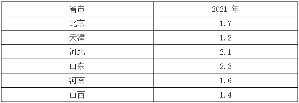 2021 年, 華北 6 省市冬季清潔取暖儲(chǔ)氣能力建設(shè)目標(biāo)