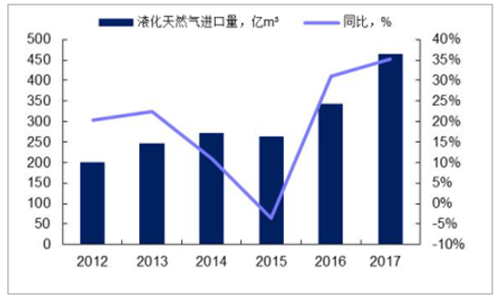 液化天然氣進(jìn)口量及同比