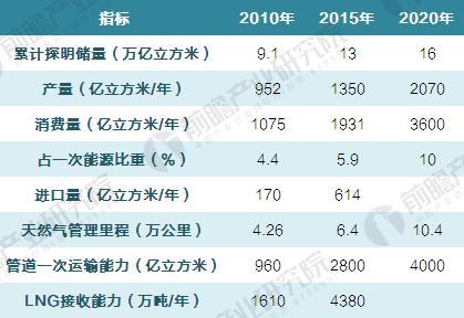 圖表1:天然氣行業(yè)十三五規(guī)劃目標(biāo)