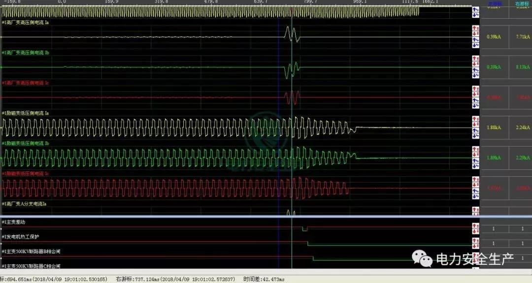 但是如果將高廠變高壓側(cè)的電流反轉(zhuǎn)180°,那么就不會動作,從而驗證了高廠變極性接反。