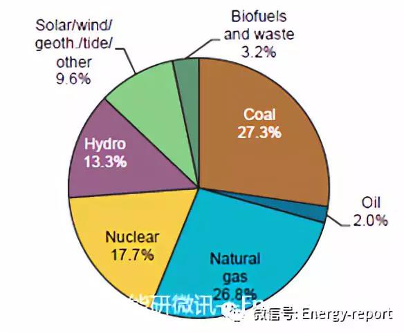 2017年經(jīng)合組織發(fā)電量情況,按來(lái)源劃分