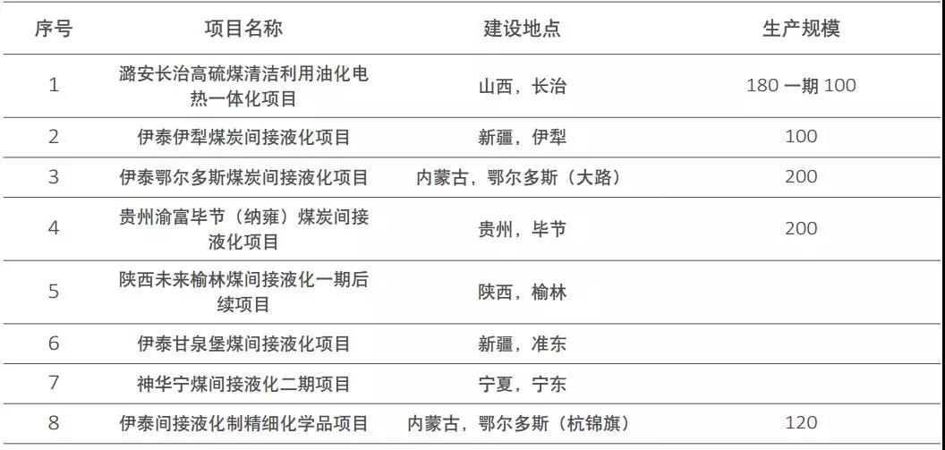 煤化工項目最新進(jìn)展