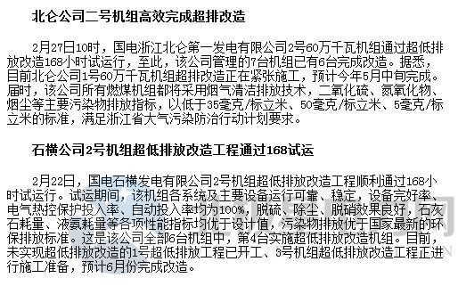 1月22日,國(guó)電成都金堂發(fā)電公司2號(hào)機(jī)組超低排放改造按照《四川省燃煤電廠超低排放和節(jié)能改造(2016-2020年)實(shí)施方案》考核標(biāo)準(zhǔn),通過(guò)四川省環(huán)保廳組織的驗(yàn)收考核。2號(hào)機(jī)組脫硝提效改造工程2016年9月16日開(kāi)工,通過(guò)更換和加高催化劑,流場(chǎng)優(yōu)化調(diào)整并加裝大顆?;覕r截網(wǎng),使脫硝效率>91%,氮氧化物排放濃度小于50毫克每標(biāo)準(zhǔn)立方米。11月11日安裝工作全面完成,機(jī)組點(diǎn)火啟動(dòng),并于12月20日順利通過(guò)168小時(shí)試運(yùn)行,各污染物排放指標(biāo)均達(dá)到超低排放標(biāo)準(zhǔn)。據(jù)悉,該公司1號(hào)機(jī)組超低排放改造也已全面完成超低排放改造,這是西南地區(qū)率先全面完成超低排放的燃煤火電企業(yè)。
